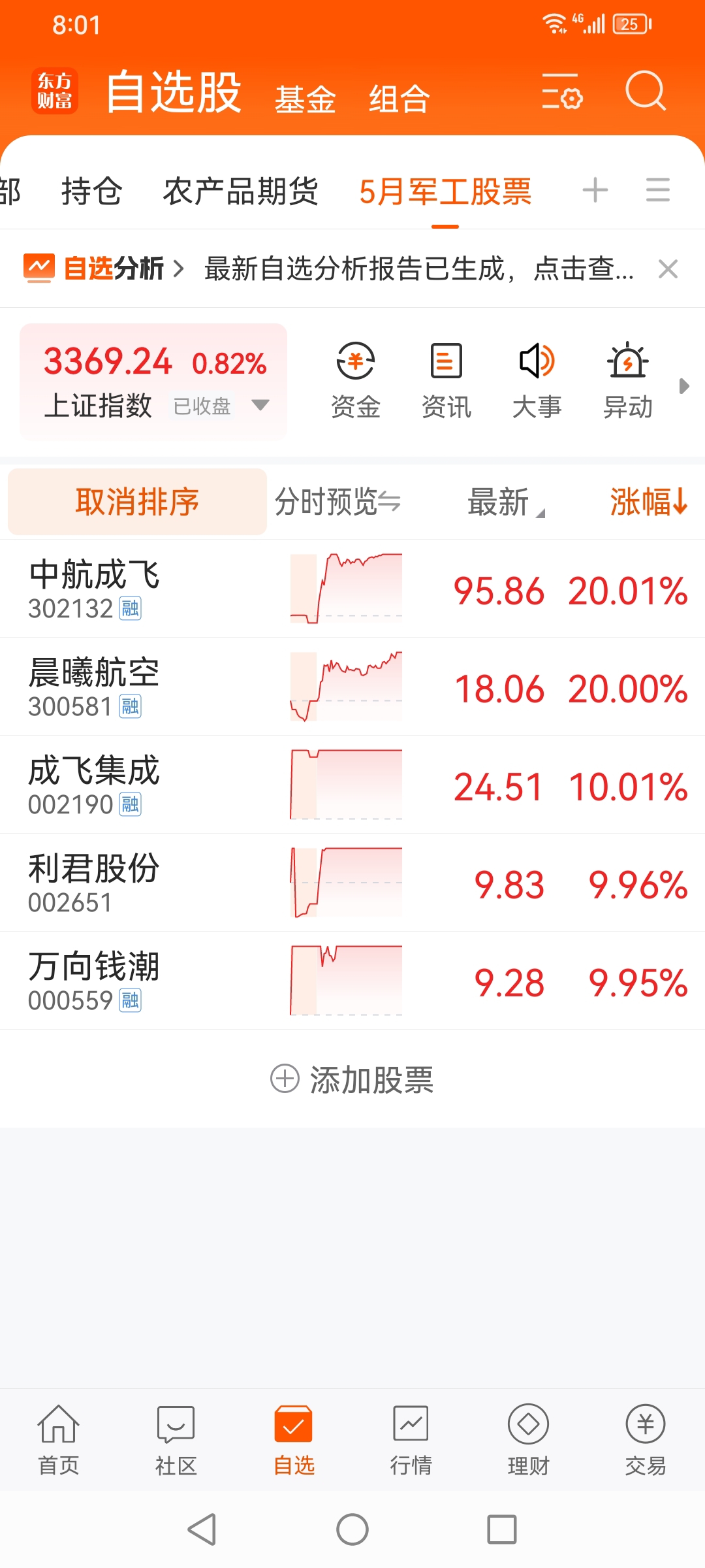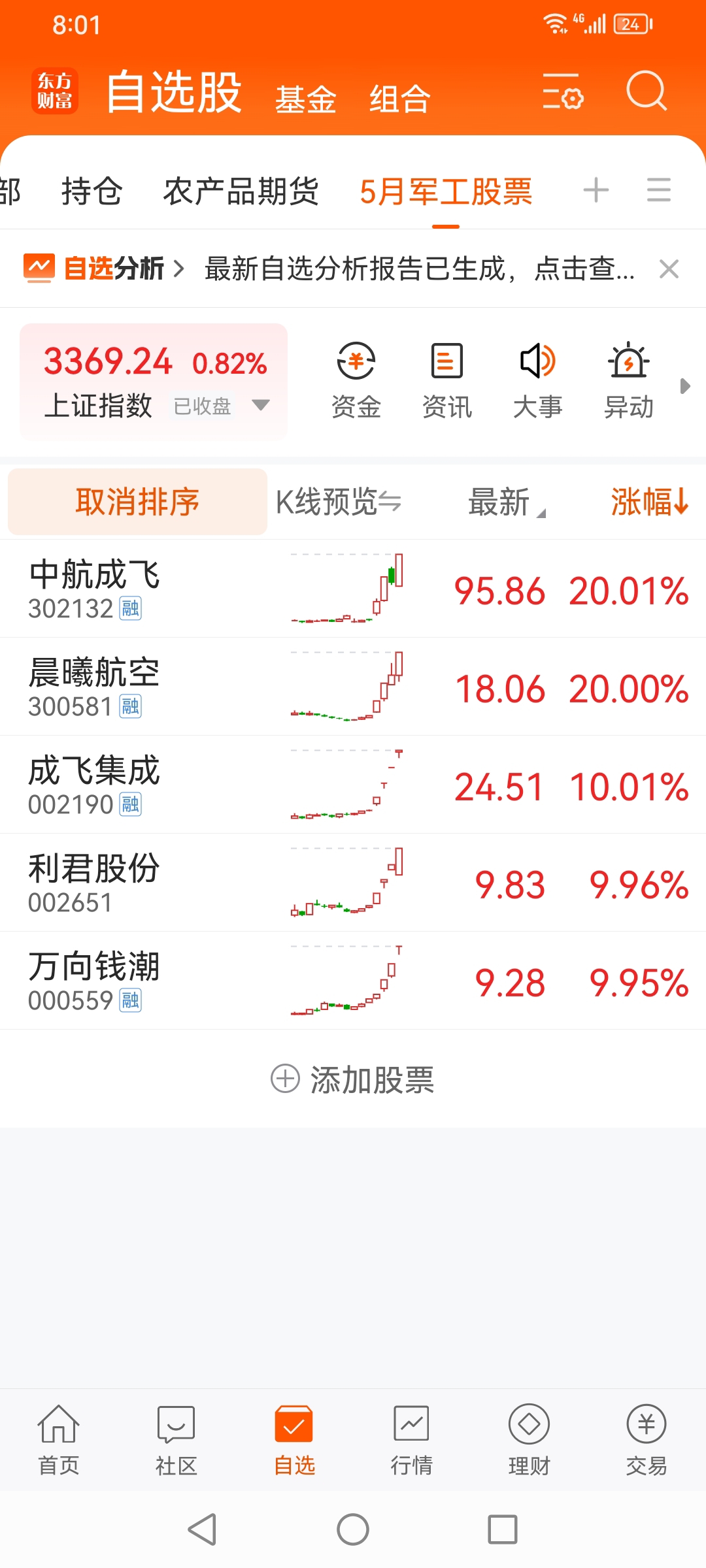 军哥:5月参与股票 军工 晨曦航空 成飞集成 襄阳轴承