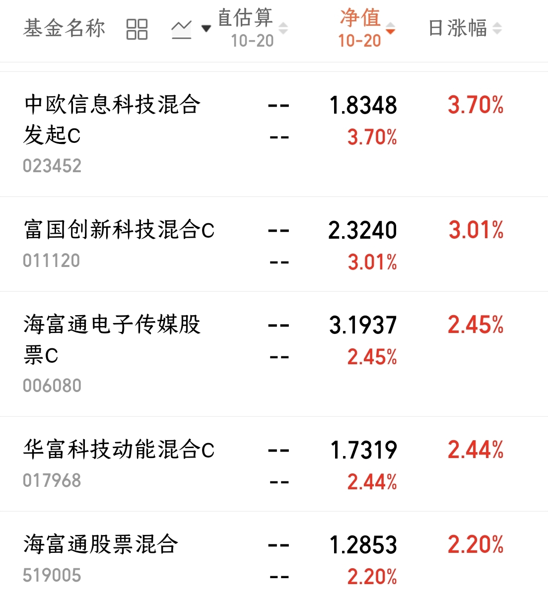 $海富通电子传媒股票C(OTCFUND|006080)$今日上涨2.45%