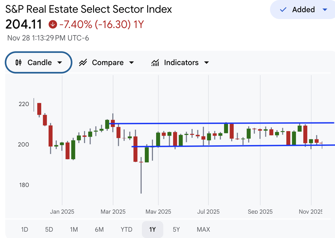 标普房地产板块:房地产板块近期在中间位置形成箱体横盘,走势相对胶着。过去几日守住关键支撑位,但整体仍处于徘徊状态,方向尚不明朗。若能突破箱体上沿,可能带来新的趋势;若跌破支撑位,则可能面临进一步压力。整体来看,房地产板块仍处于等待市场信号的阶段。