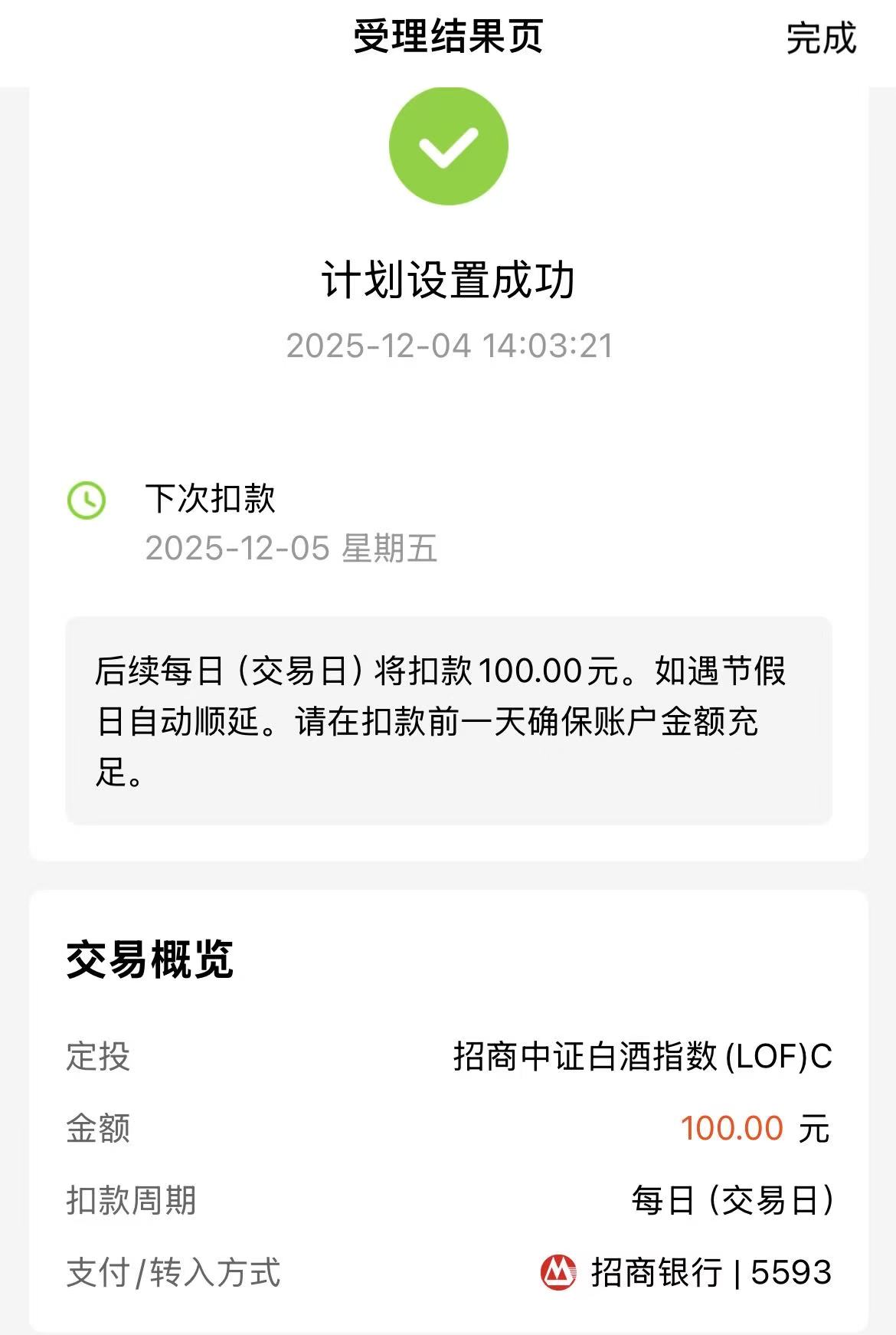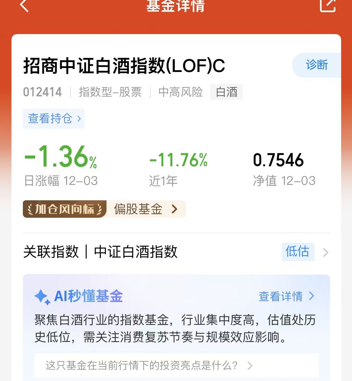 A股还是震荡的盘面呀,现在三大指数又涨跌不一了,全市场仅有1500只个股上涨,白酒继续调整,不过我觉得随着经济复苏带动商务、宴席用酒需求回暖,再加上低估值修复动力,长期还是可以耐心看好的,$招商中证白酒指数(LOF)C(OTCFUND|012414)$重仓贵州茅台、五粮液等前十大白酒股,我今天开始定投起来。$永赢消费主题C(OTCFUND|006253)$ #12月基金投资策略# #12月你看好哪条投资主线?#