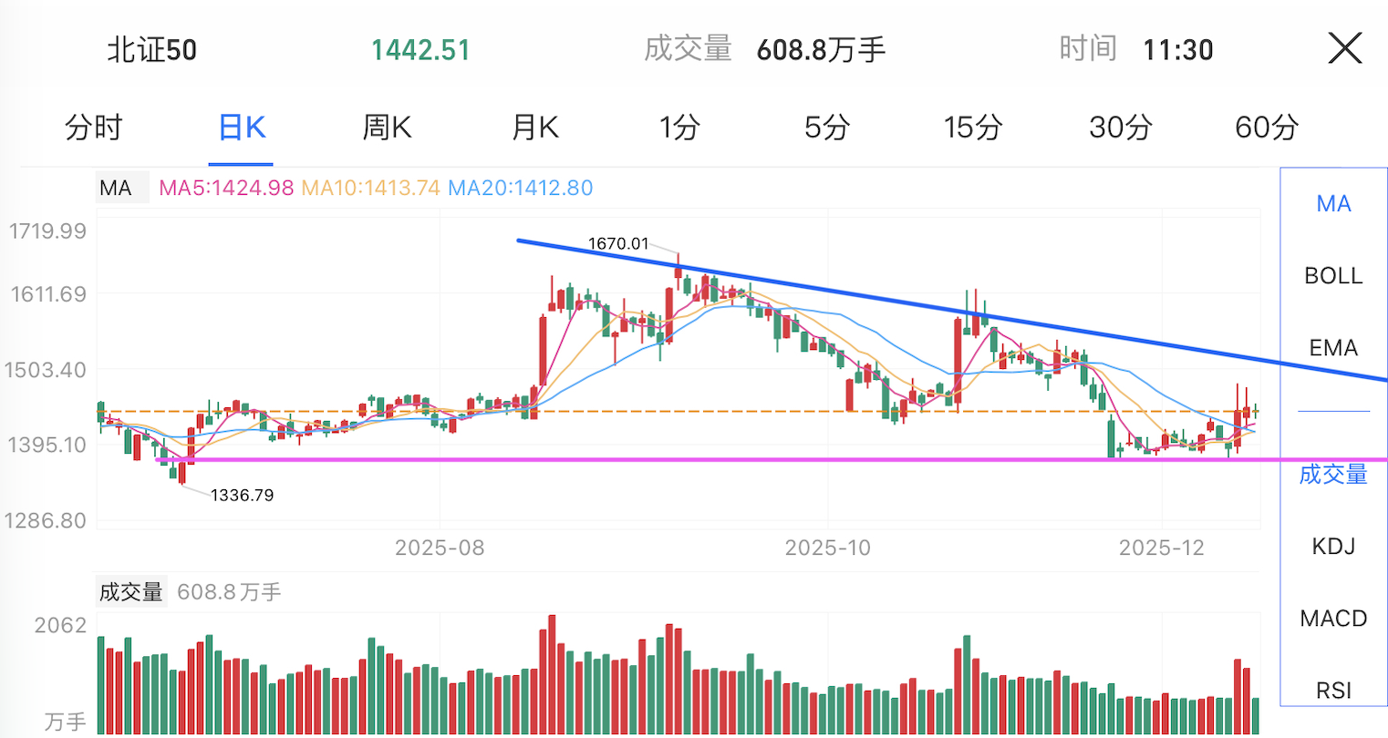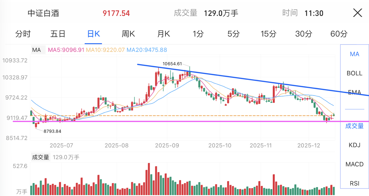 白酒、北证50:短期在底部区间震荡,有尝试企稳的迹象。白酒受制于清晰的下降趋势线压制,但在支撑位反弹,有止跌迹象。北证50这两日放量反弹,表现较为强势,但依然受到下跌趋势线压制,不能判断就此回升。