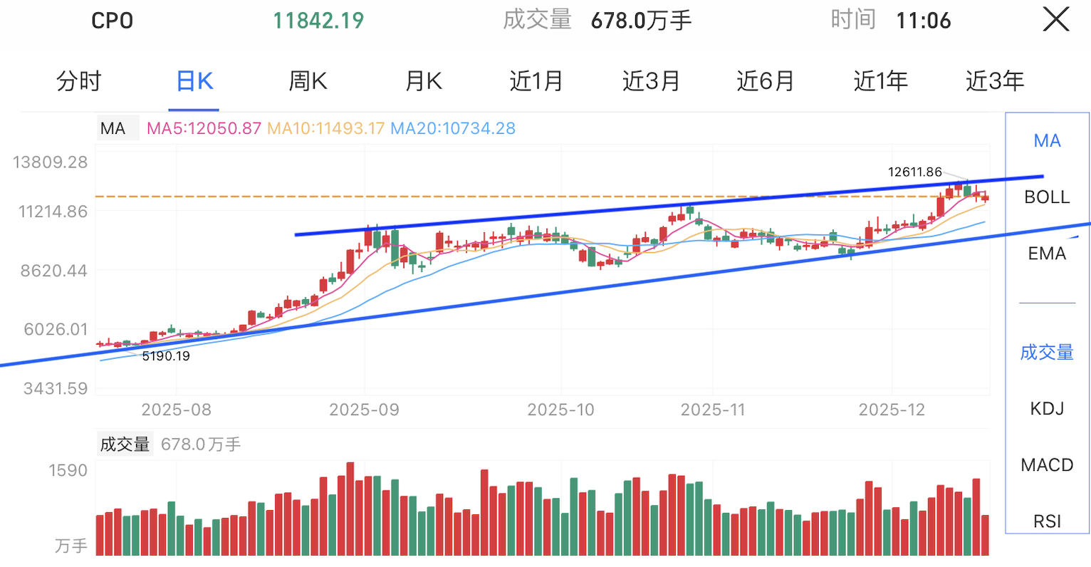 CPO:在经历了一轮强势飙升后,目前进入了高位箱体整理阶段。最近一次上攻受阻于关键箱体上沿压力位,显示出短期动能有所衰竭。从图形上看,短期有下跌迹象,可能继续维持震荡盘整,需警惕其回踩通道下沿支撑位的可能性。