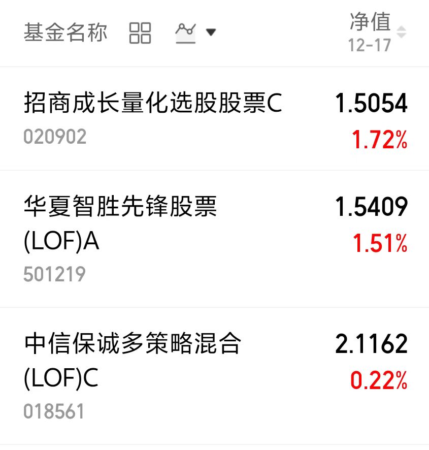 大盘昨天太给力了,三大指数持续拉升,整体涨了不少,小盘股昨天表现也不错!$招商成长量化选股股票C(OTCFUND|020902)$昨天涨了1.72%