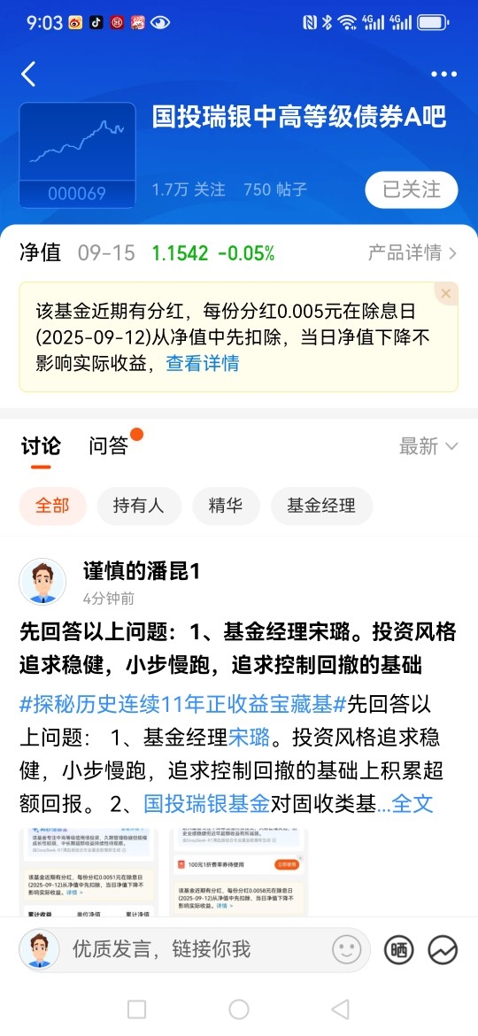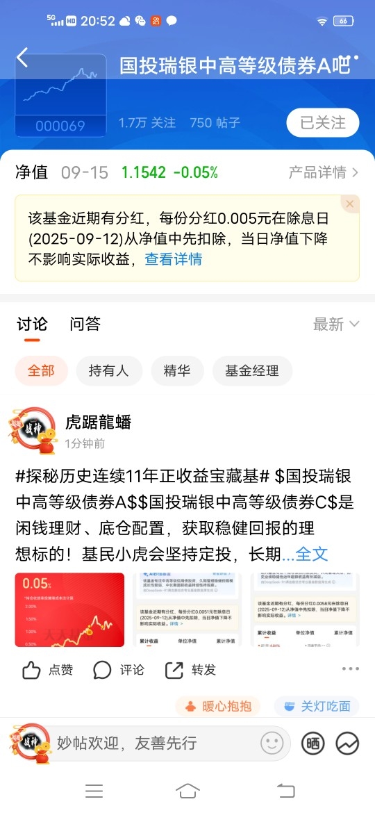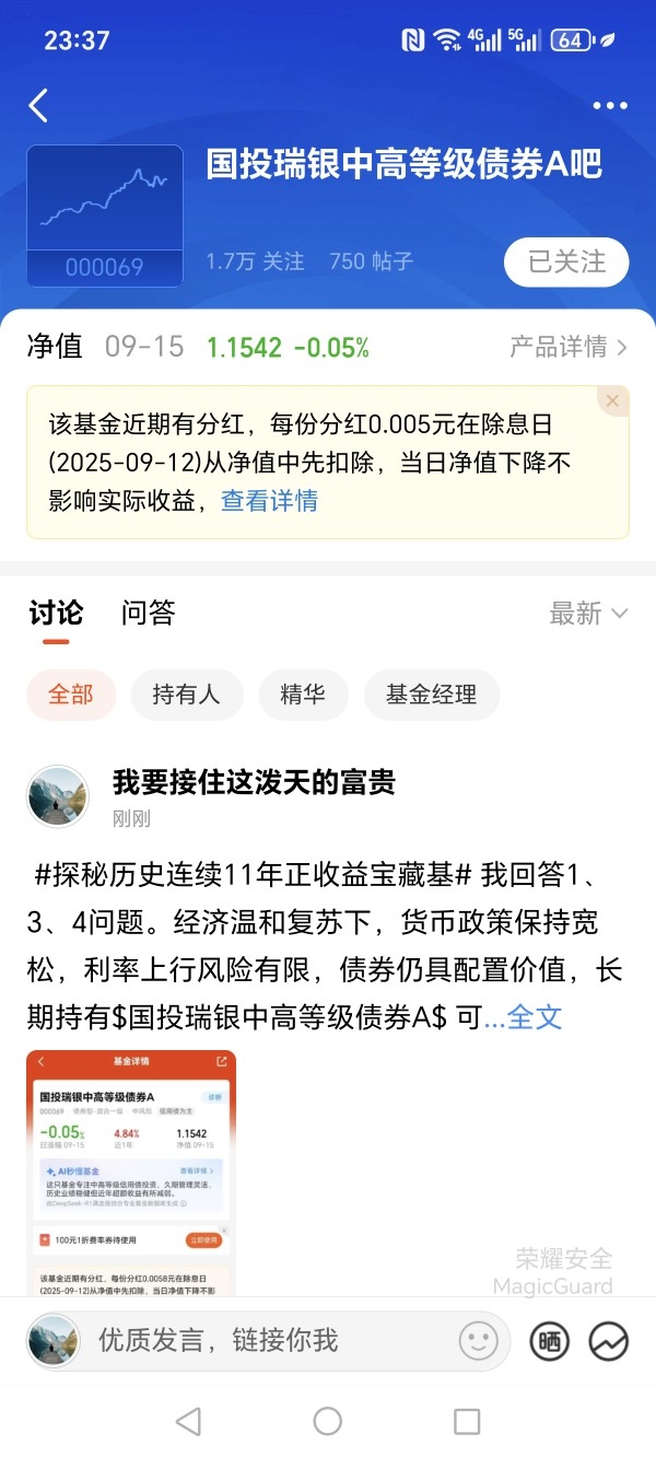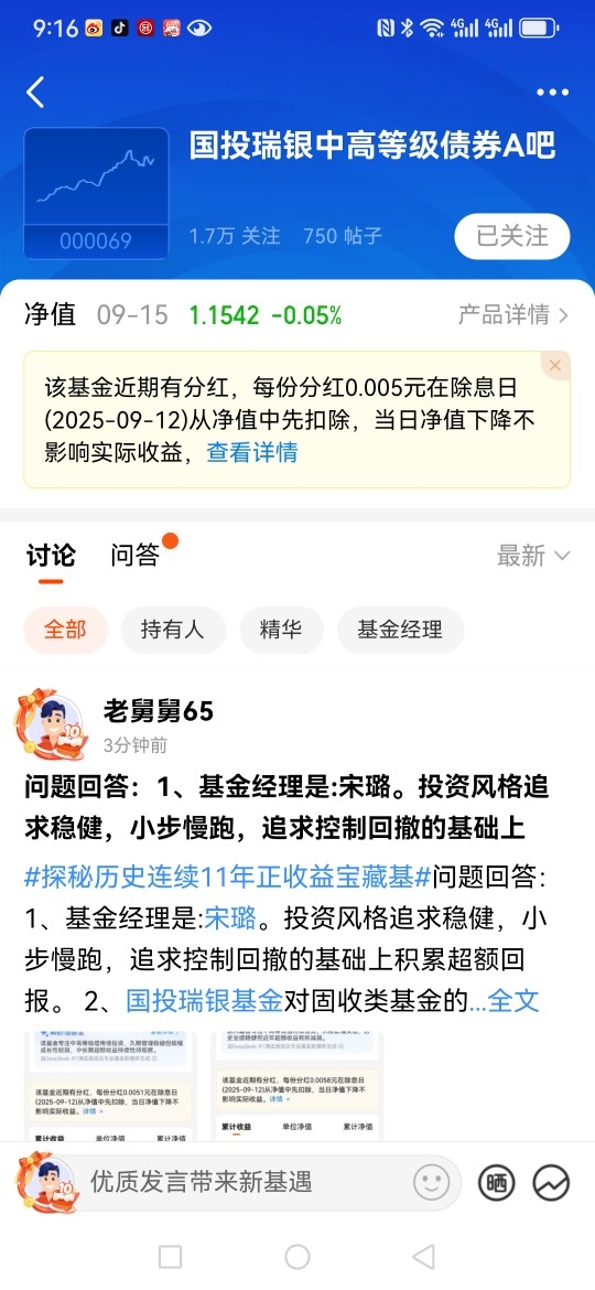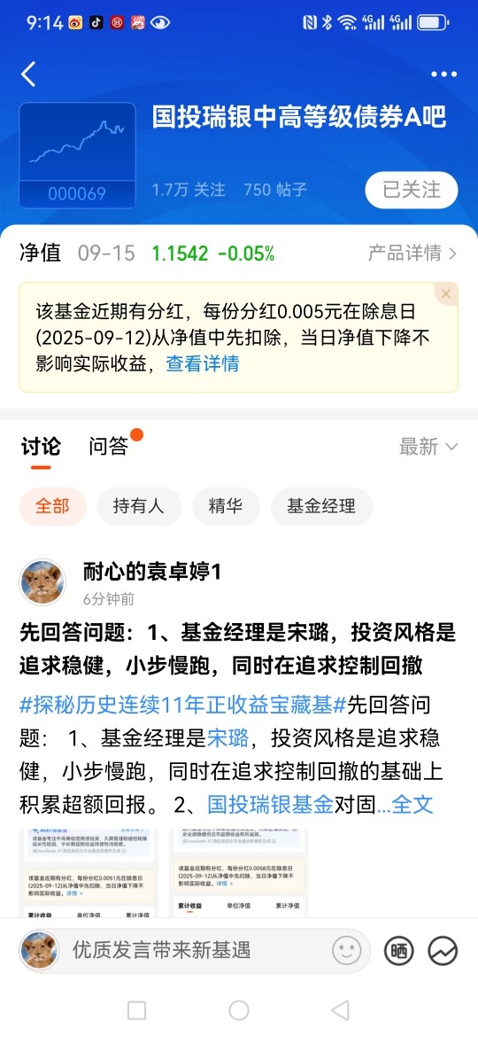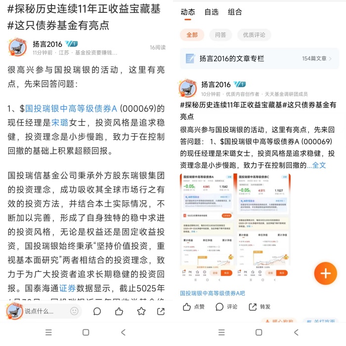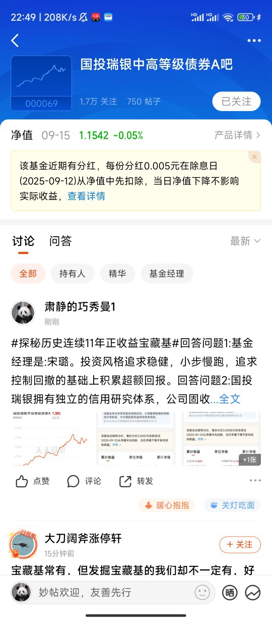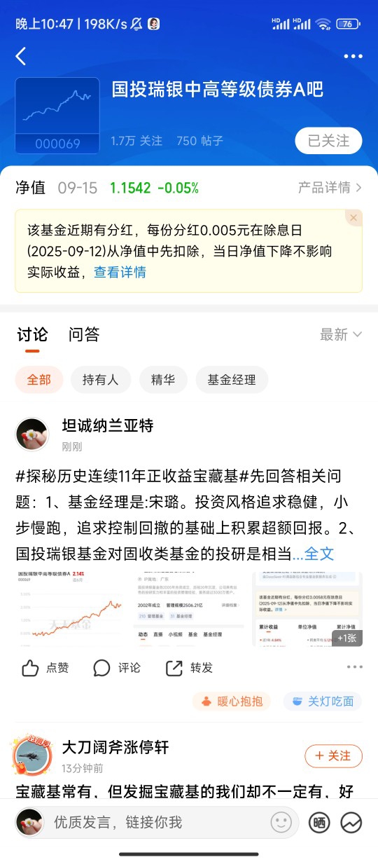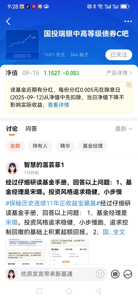 1)您需要进入国投瑞银中高等级债券型证券投资基金的基金吧,发帖带上话题#探秘历史连续11年正收益宝藏基#