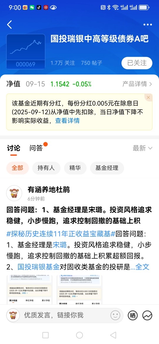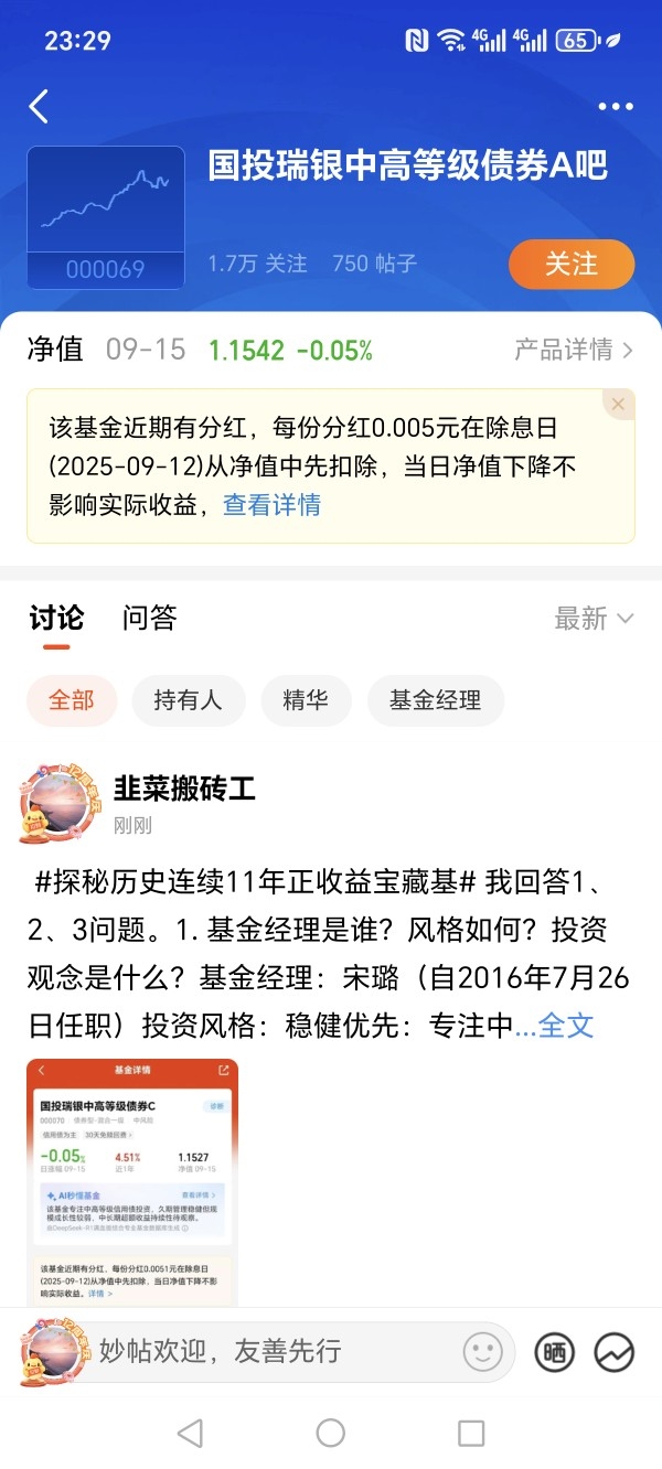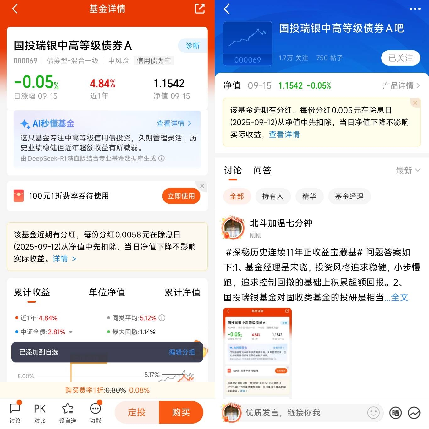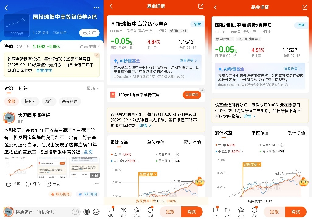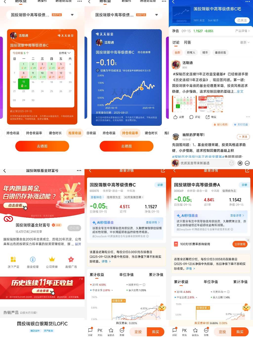 前往讨论区$国投瑞银中高等级债券A(OTCFUND|000069)$ $国投瑞银中高等级债券C(OTCFUND|000070)$,细读手册《历史连续11年正收益》,然后回答以下这几个问题: