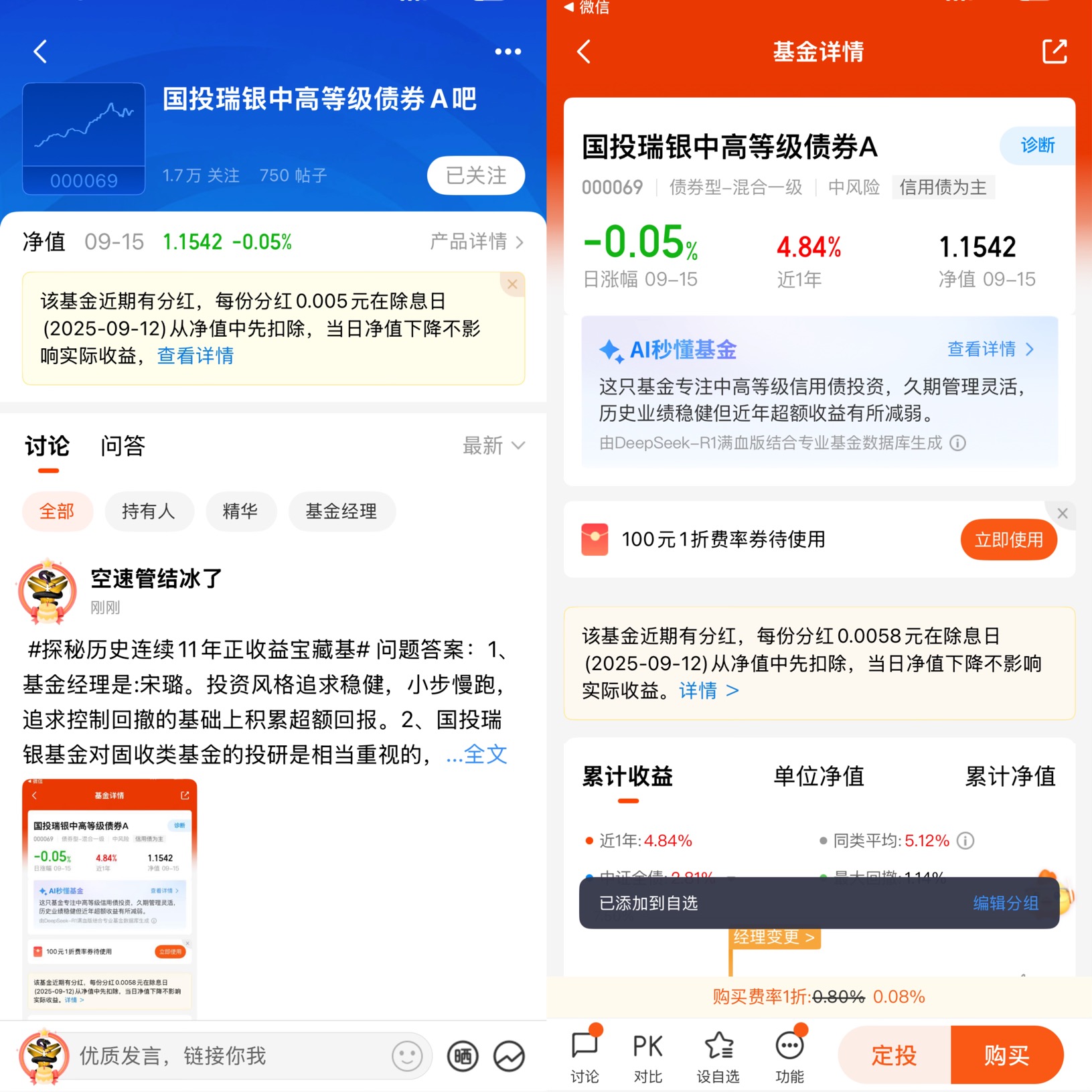 2)晒出国投瑞银中高等级债券型证券投资基金产品的加自选截图