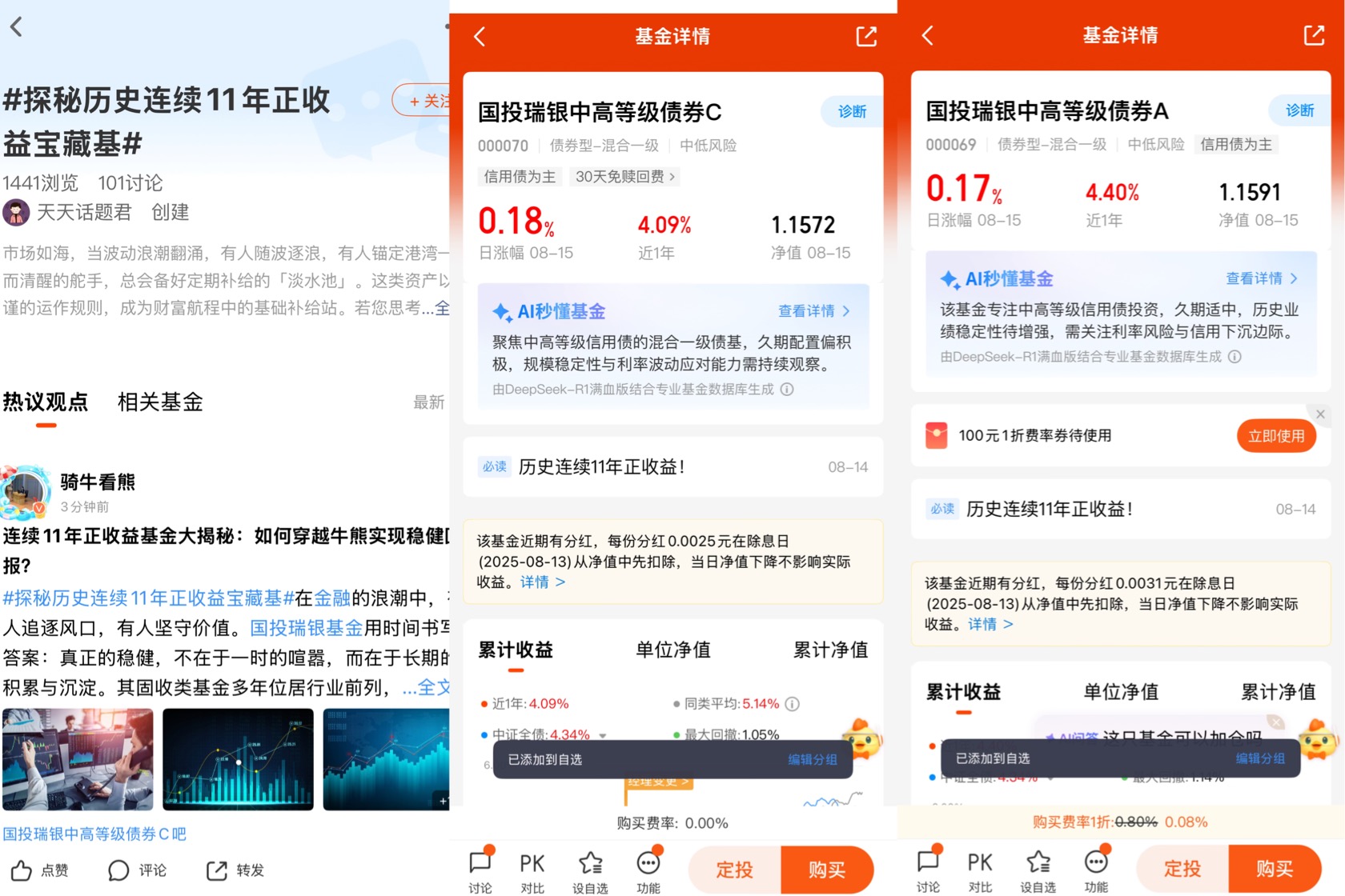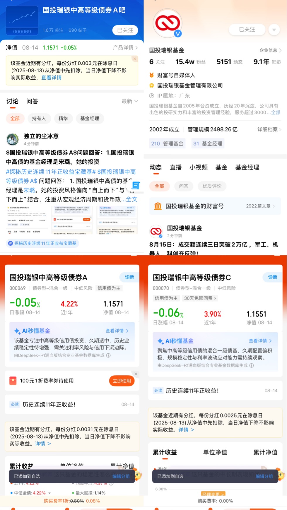 2)晒出国投瑞银中高等级债券型证券投资基金产品的加自选截图