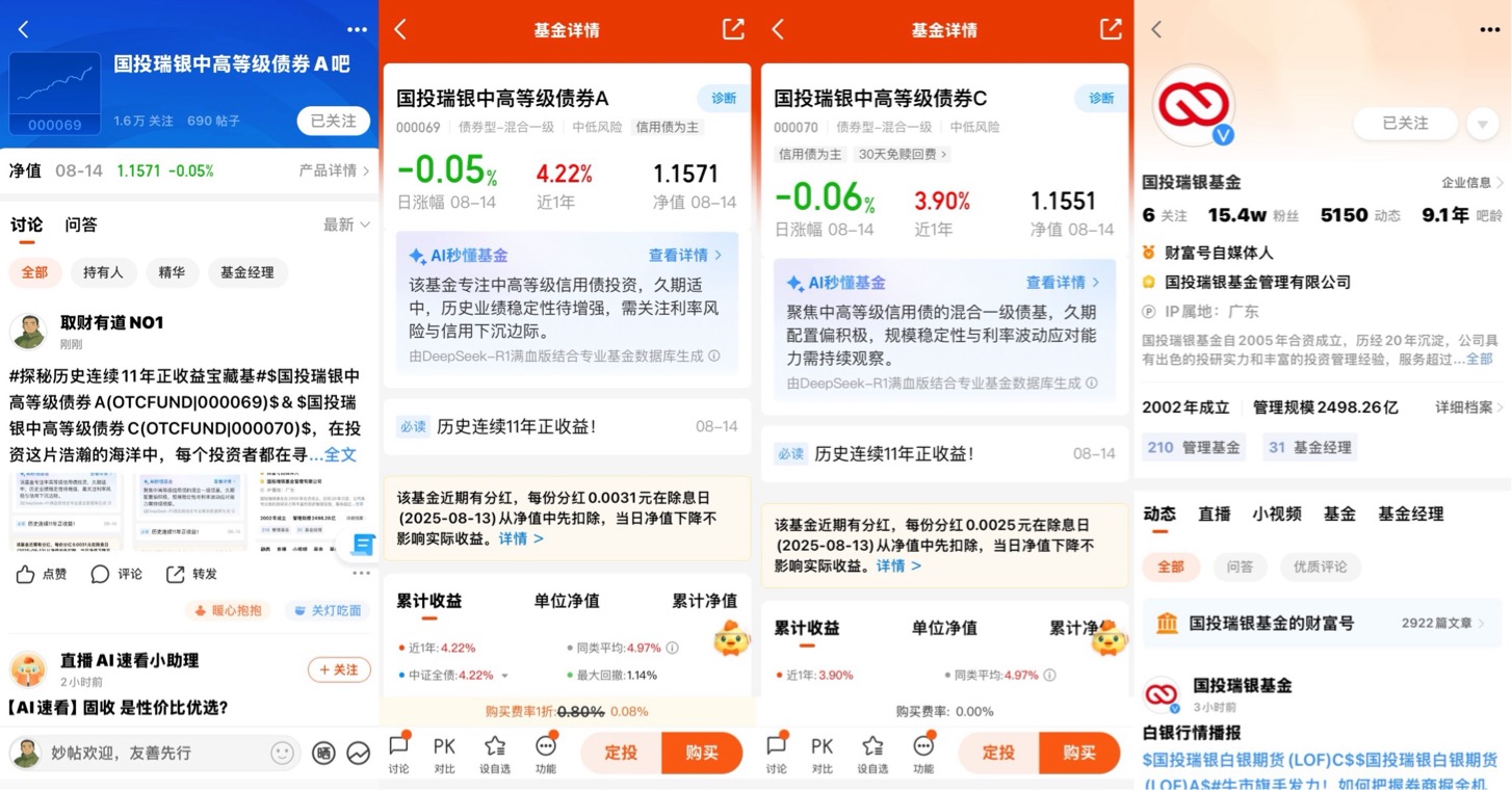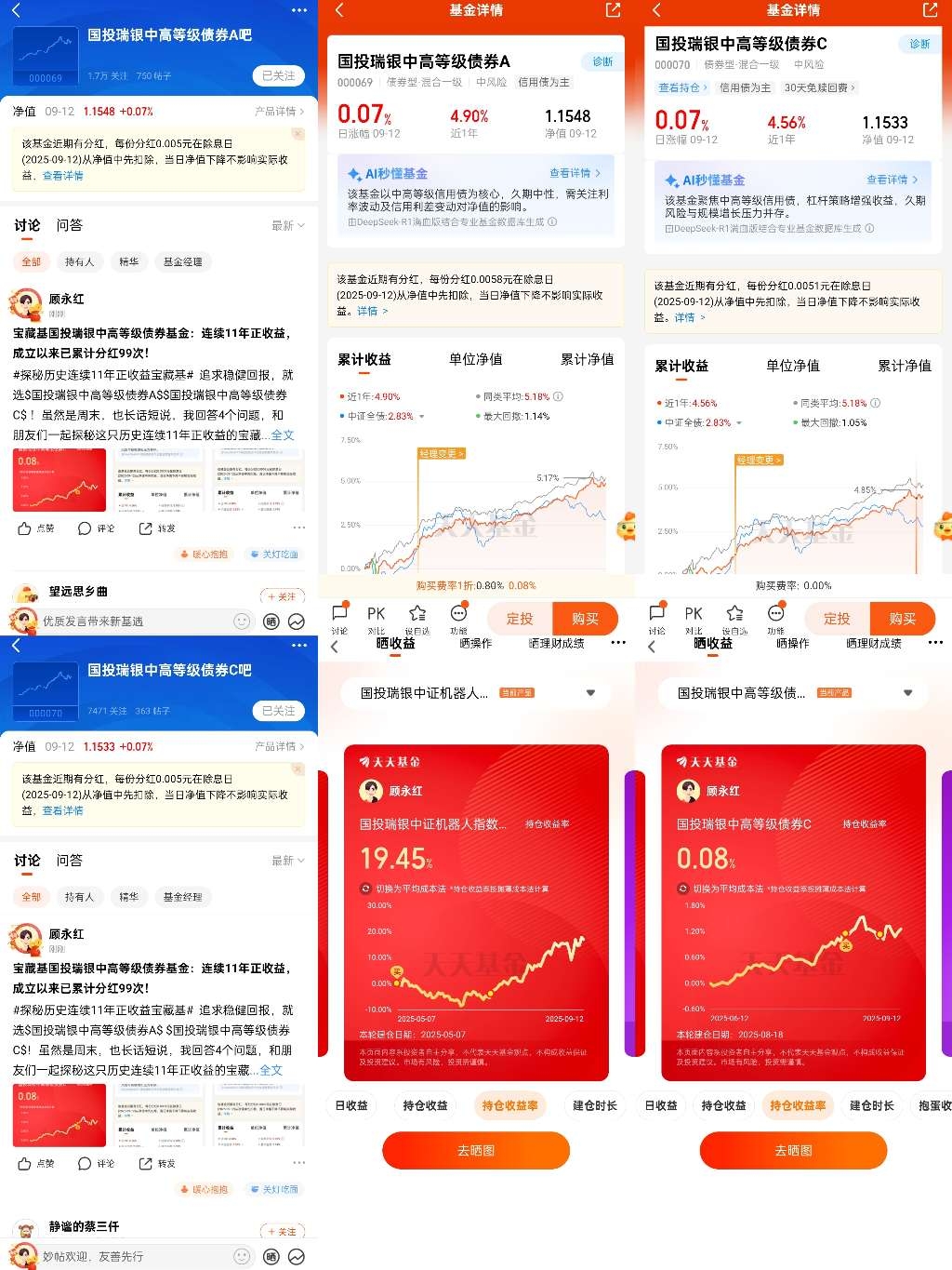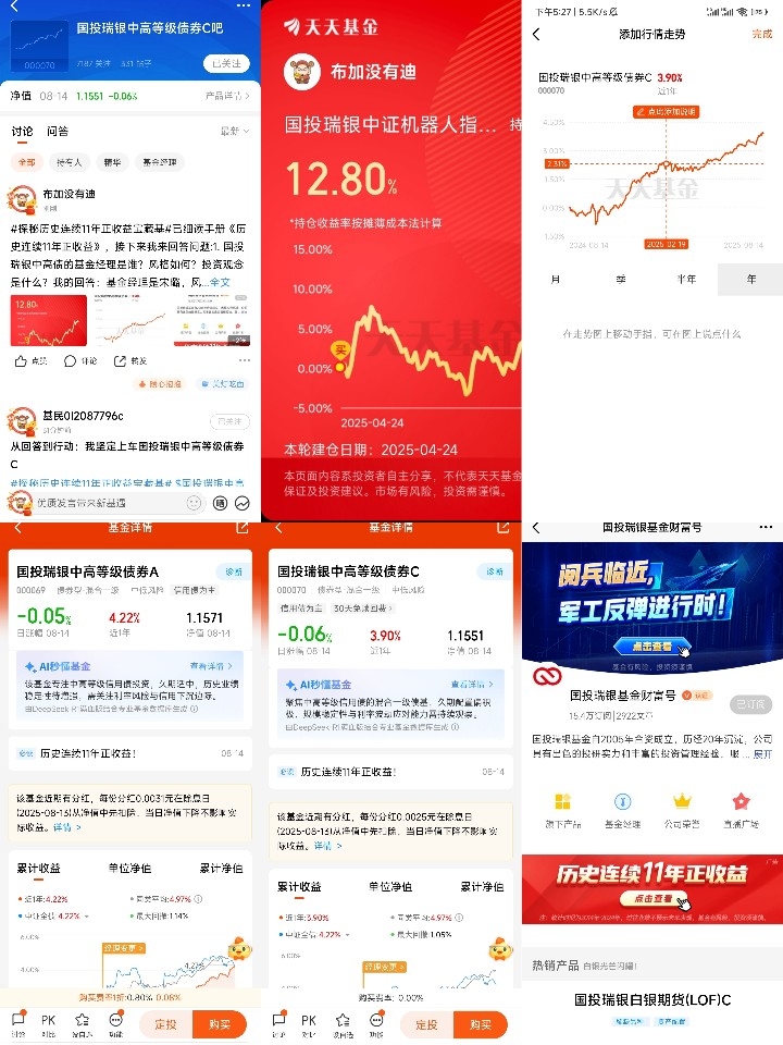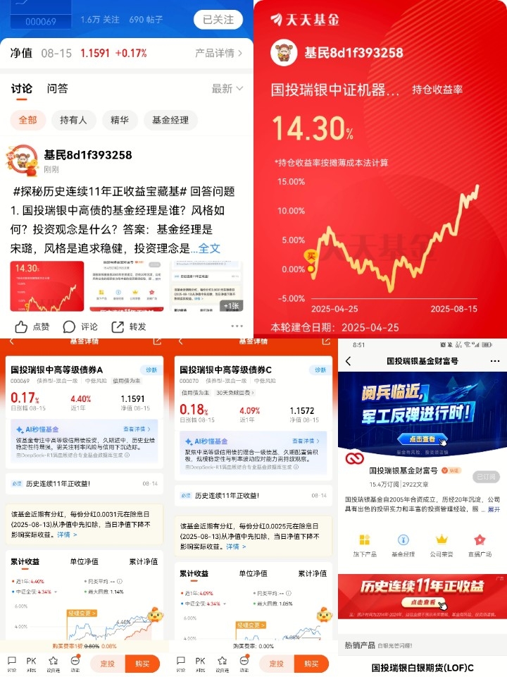 前往讨论区$国投瑞银中高等级债券A(OTCFUND|000069)$ $国投瑞银中高等级债券C(OTCFUND|000070)$,细读手册《历史连续11年正收益》,然后回答以下这几个问题: