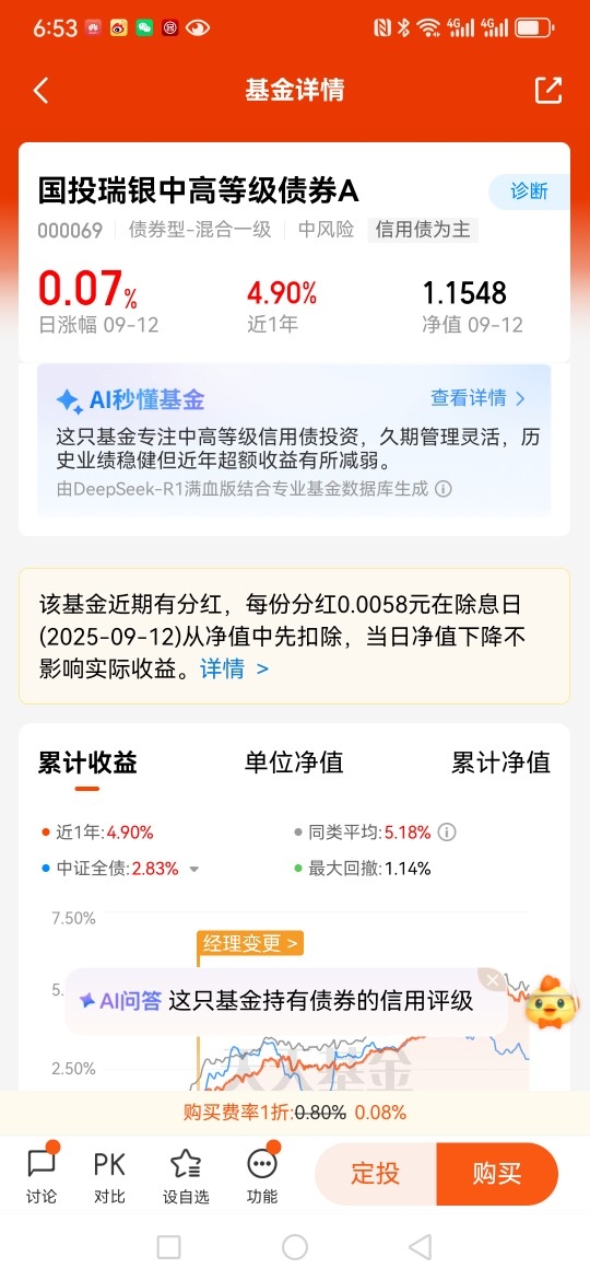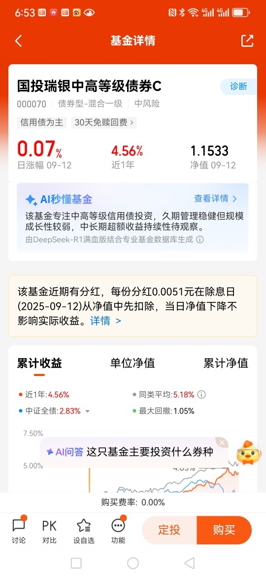 3、8月11号公告显示的是国投瑞银中高等级债实施今年的第7次分红。
