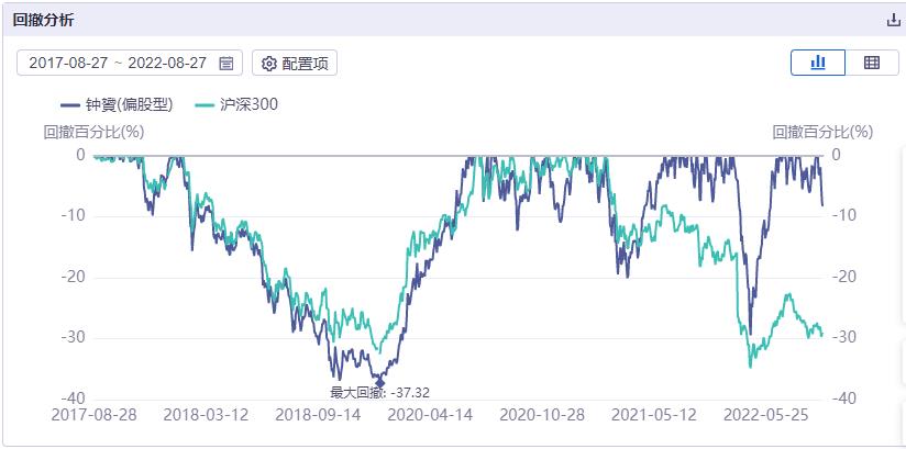 从最近五年的回撤数据看,最大回撤为37.32%,略高于同期的沪深300指数,回撤控制能力偏弱,但是修复比较快。