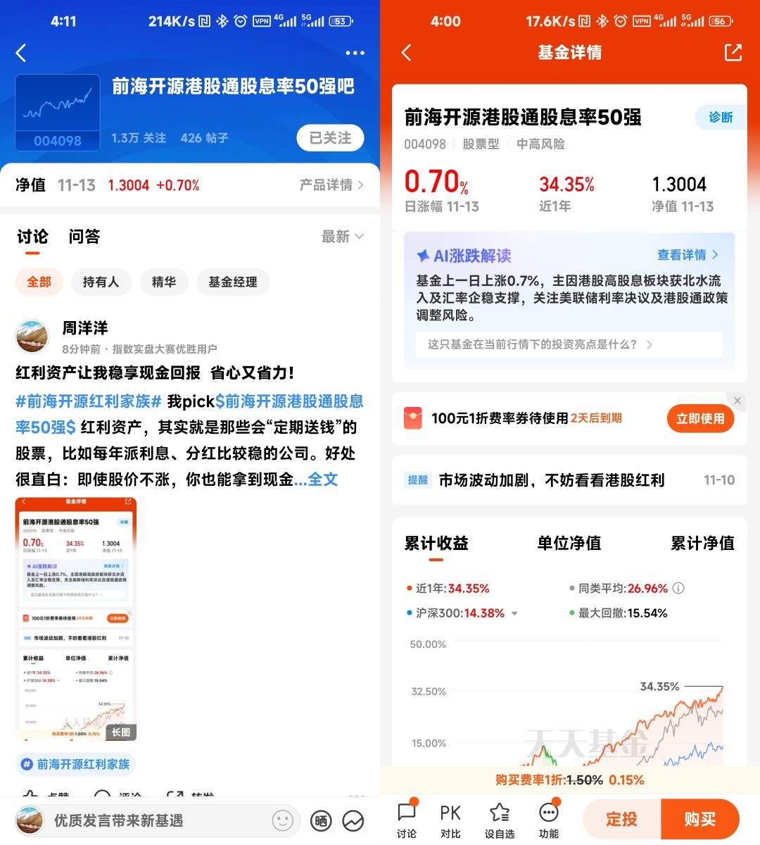 【港股红利】$前海开源港股通股息率50强(OTCFUND|004098)$:聚焦港股红利,近一年涨超26%!
