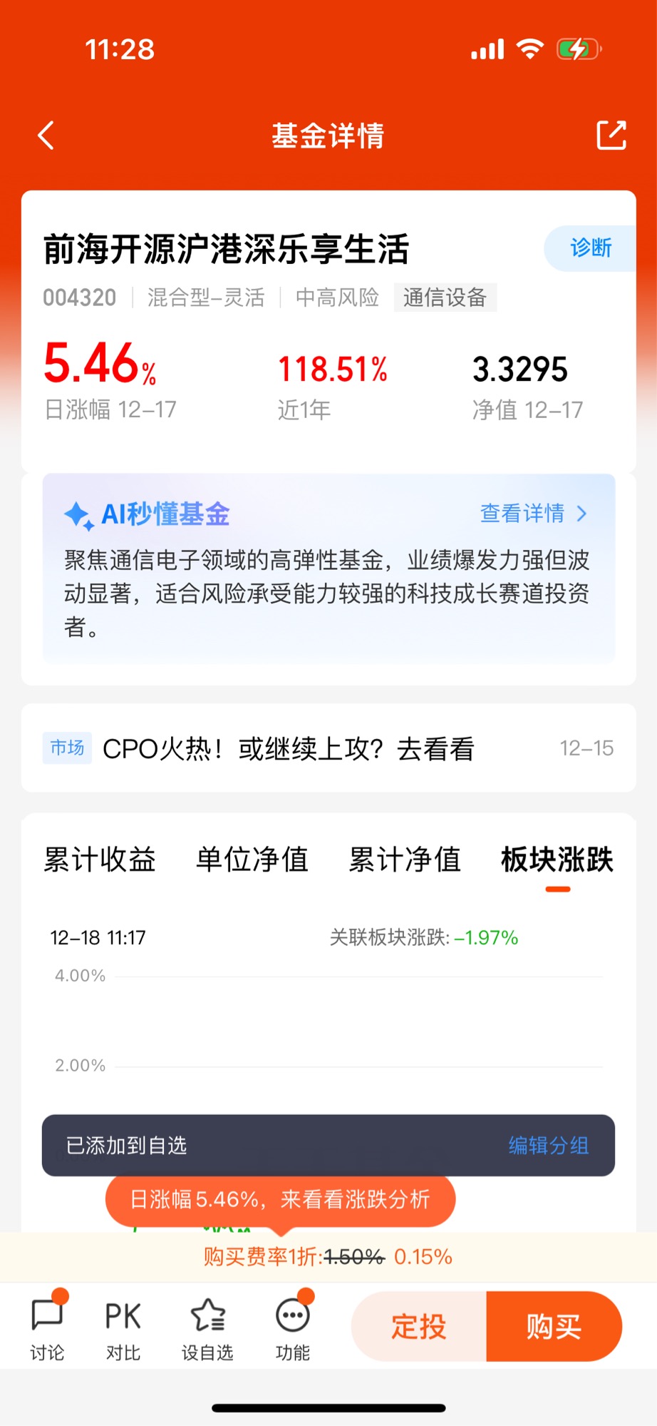 今年是港股和A股科技行业的大年,我虽然没有配置科技板块,但是看到市场较为活跃也很高兴,今天特别关注到$前海开源沪港深乐享生活$ 取得了+116.33%的年收益,自2017年5月成立以来该基金年化收益高达+15.04%,切实为投资者带来一场港股和A股的科技盛宴,不错不错,为前海开源基金点赞,希望后续有机会能够搭上这只基金的顺风车,不用自己胡乱搭配,能够通过基金省心省力的赚到钱。