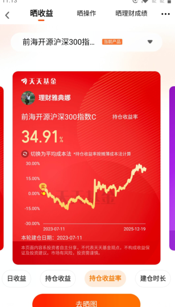 看着我账户里$前海开源沪深300指数C(OTCFUND|015671)$超过34%的收益率心里挺多感慨的。我算不上什么投资大神,2023年7月买它的时候,想法其实特别简单。#晒收益#