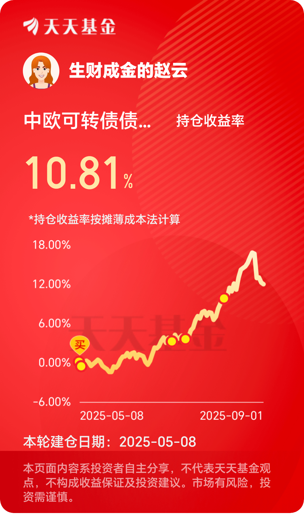 继续红,发现了$中邮睿信增强债$ 。节假日更多票息收益,同类排名靠前的呢,1个月下蛋383个,可转债信用债不错的