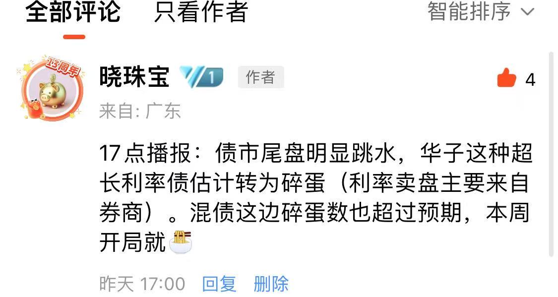 注意,如果播报后,债市尾盘拉升或者跳水,17点左右我会在估值帖子的评论区更新情况。