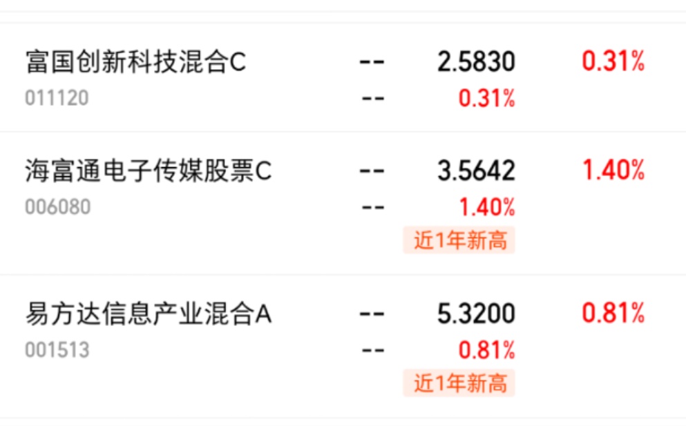 今天$海富通电子传媒股票C(OTCFUND|006080)$上涨1.4%