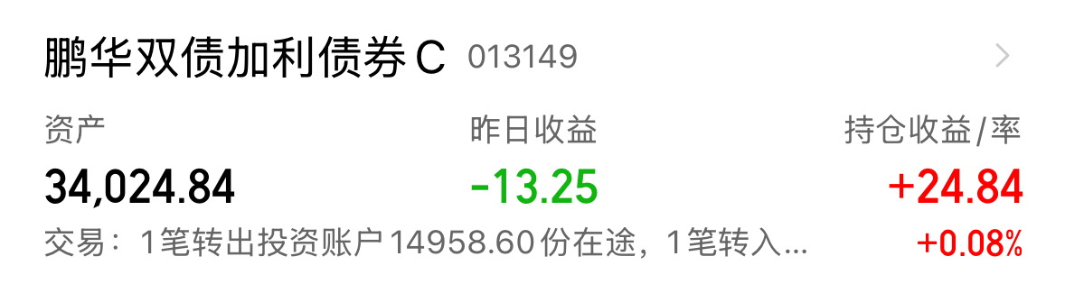 不得不承认,鹏华双债加利债券C在行情好的时候弹性是真的高,这周股市大反弹,鹏华双债加利周一收蛋22个,周二收蛋44个...趁上周砸出黄金坑,我赶紧加仓。