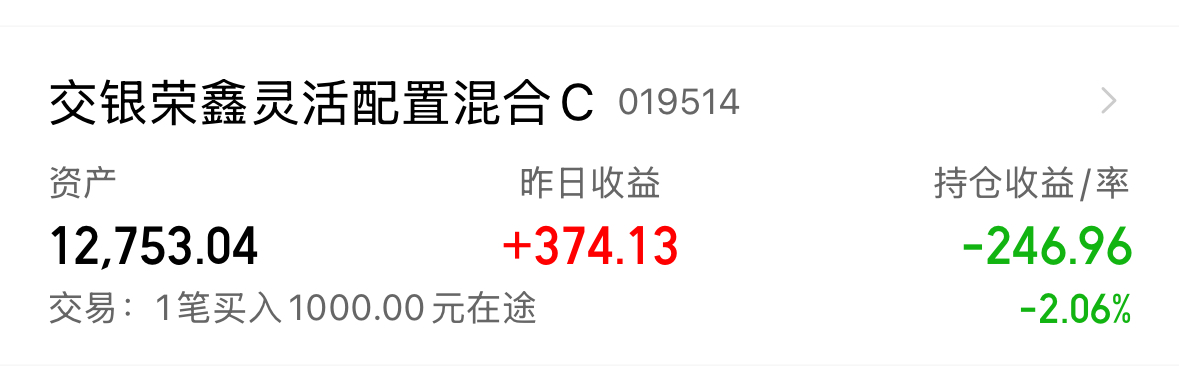我加1000元 $交银荣鑫灵活配置混合C(OTCFUND|019514)$