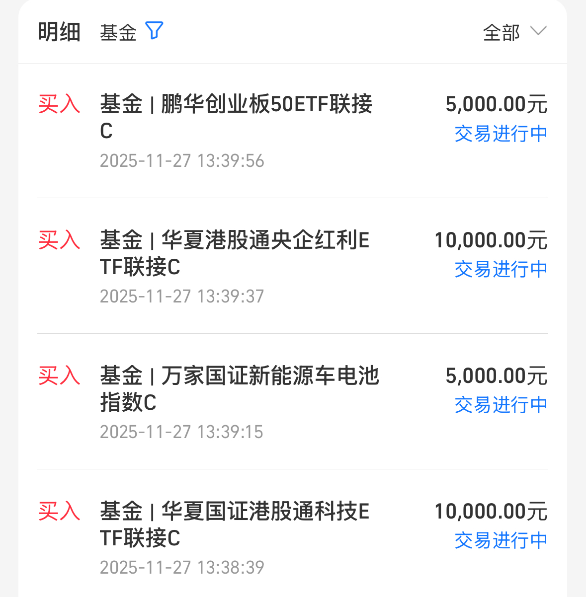 新能源方向低位的时候我倒是加了几笔光伏,电池给忘记低吸了,好在电池目前反弹的也还不算多,依旧还处在阶段性低位,咩咩今天赶紧加了5000万家国证新能源车电池指数C。