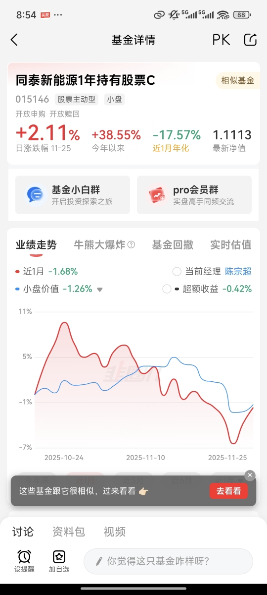 无意中刷到同泰开泰混合C(007771),近一月表现真给我惊喜了!涨的时候冲得挺猛,跌的时候又很抗揍,北交所这波行情它抓得真准。这只007771,最近一个月偷偷发力,收益跑赢我大部分基金。查了下,原来是专注北交所小市值的,弹性果然大。$同泰开泰混合C$