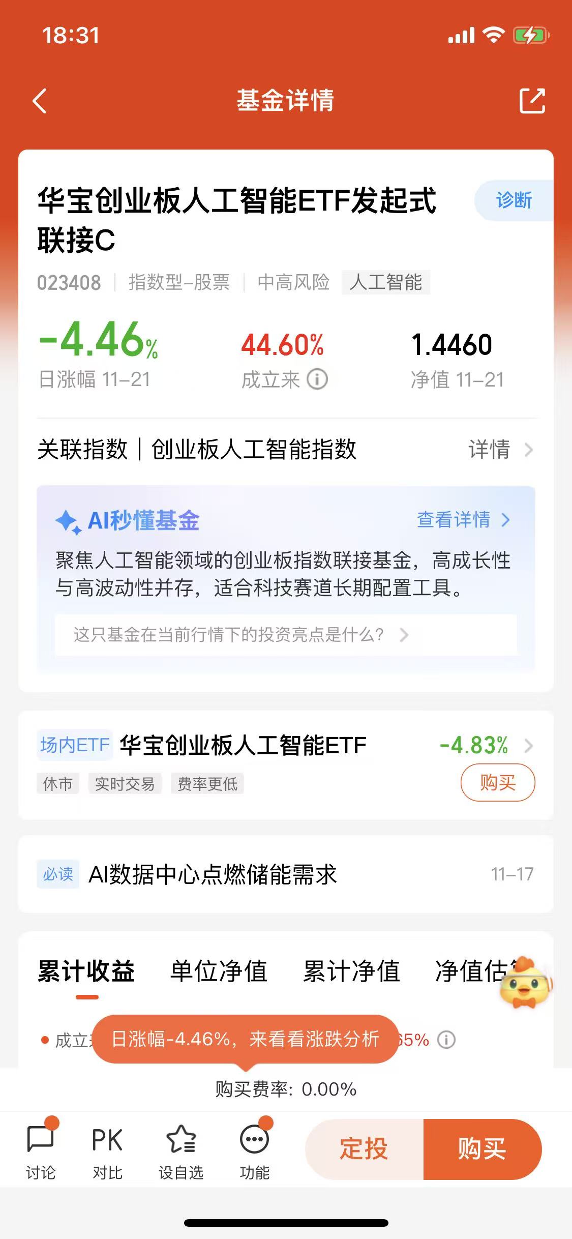 $华宝创业板人工智能ETF发起式联接C(OTCFUND|023408)$