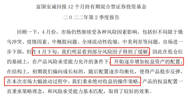 每一次规避较强的市场风险之后,她一旦发现风险得到了较为充分的释放,市场出现了一些积极的因素,就会逐步提高股票仓位,力争获取更好的收益。