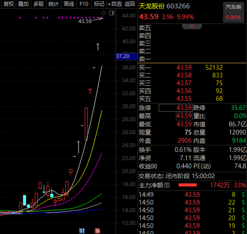 “龙字辈”又现大幅狂飙。截至收盘,天龙集团20cm涨停,龙溪股份、龙头股份、龙韵股份、易德龙、天龙股份、锋龙股份、龙宇股份、龙洲股份等10股涨停。其中,天龙股份为龙头中的龙头,已经连续收获10个涨停板。