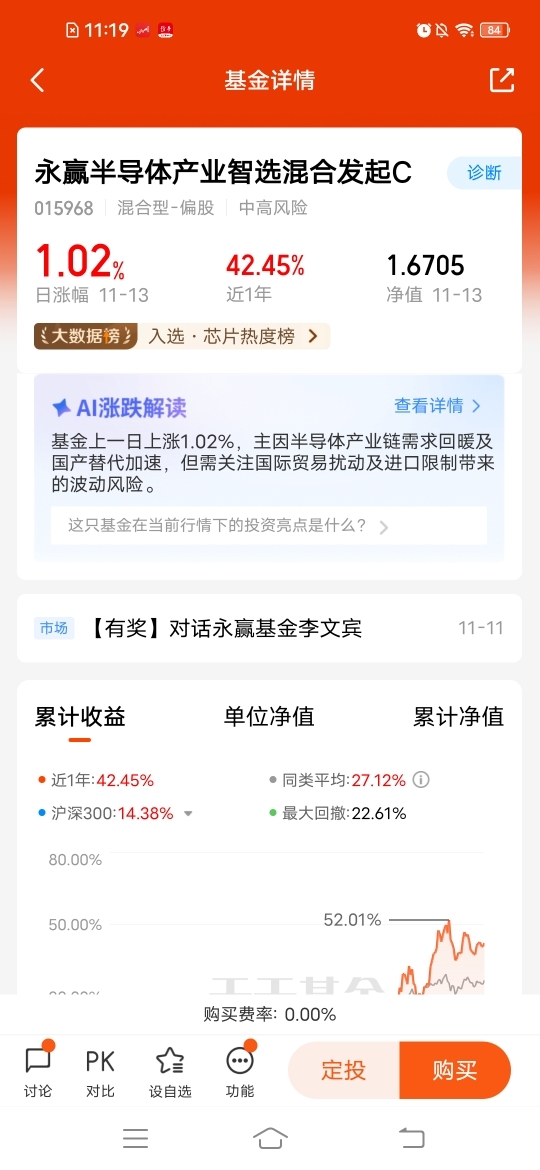 $永赢半导体产业智选混合发起C$ 收集点筹码,看好后市发展空间,昨天涨幅1.02%,近半年涨幅45.30%,近一年涨幅达42.45%,主投光刻机方向,抗压能力也相对要强。作为核心资产赛道潜力大。半导体消费市场和电子信息产品需求日益增大,这样的行情下,提前蹲一波。#慢慢投基路 你悟出了哪些投资哲学?#