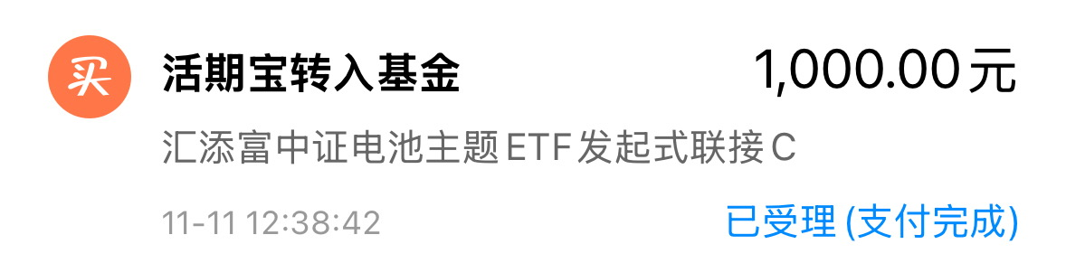 我加1000元$汇添富中证电池主题ETF发起式联接C(OTCFUND|012863)$