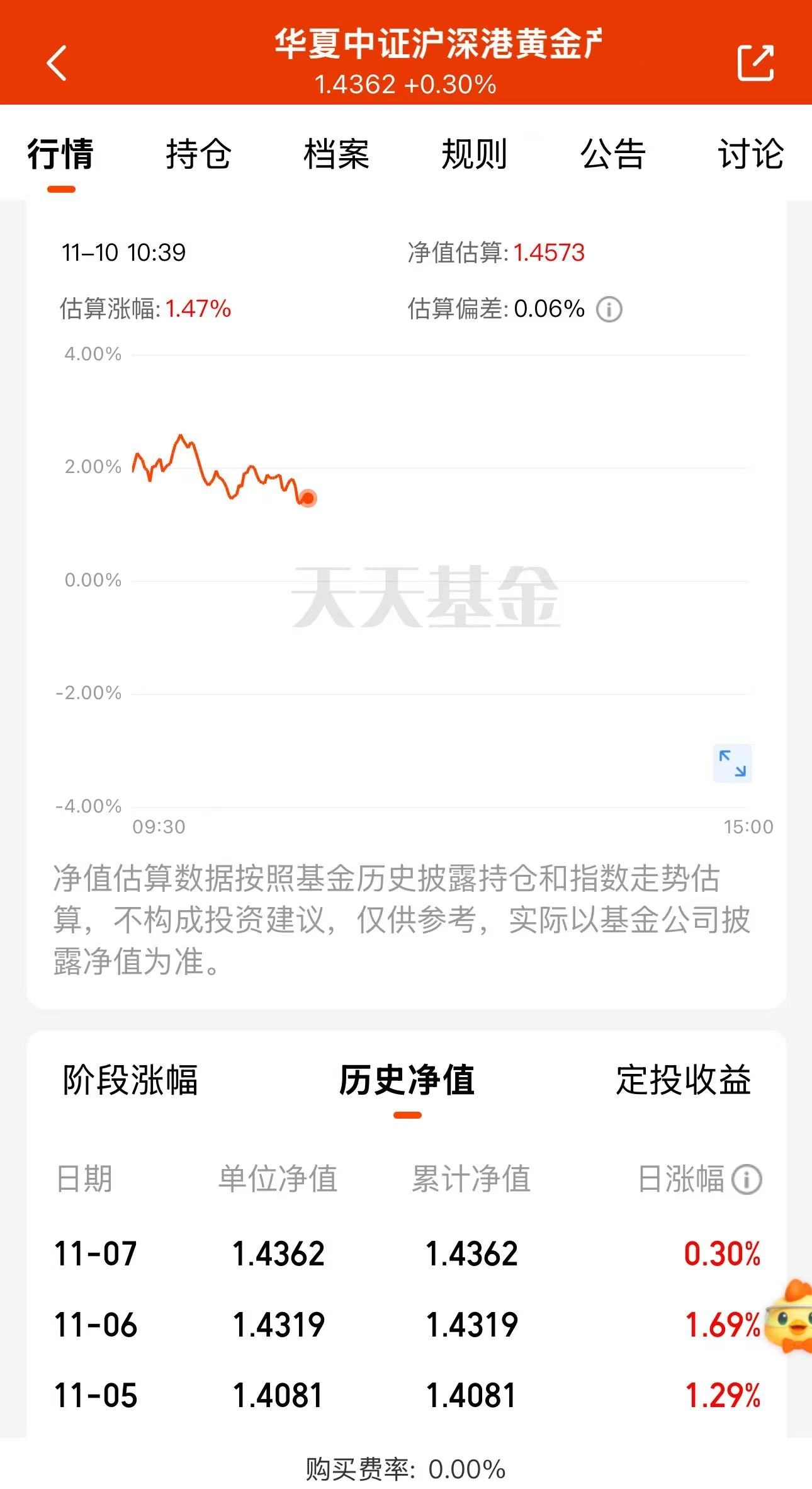 在消费复苏的驱动下,黄金的上涨符合预期,今天估值上涨1%+,4连涨应该有了,近6个月收益超32%,选择$华夏中证沪深港黄金产业股票ETF发起式联接C$赚收益了