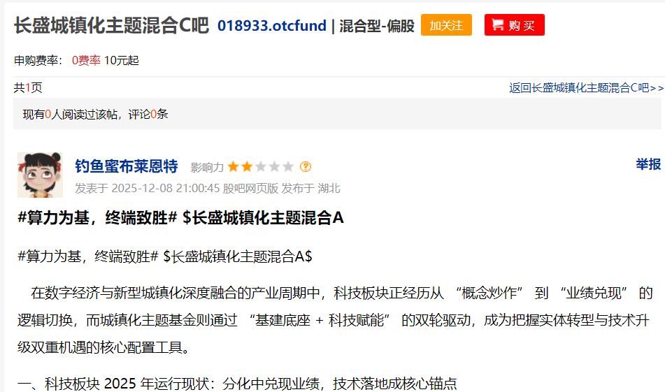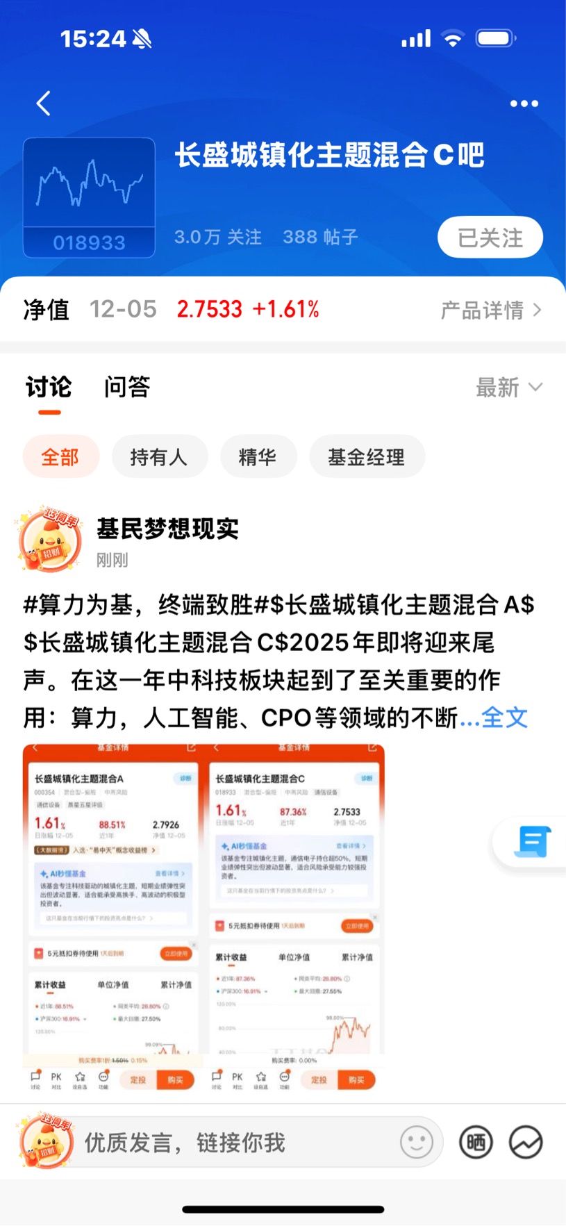 2、关联话题#算力为基,终端致胜#在$长盛城镇化主题混合C(OTCFUND|018933)$讨论区留言发帖。(发帖分享你对当前市场的看法、年末配置规划,对于长盛城镇化怎么看,以及对它的投资体验,需大于60字。)