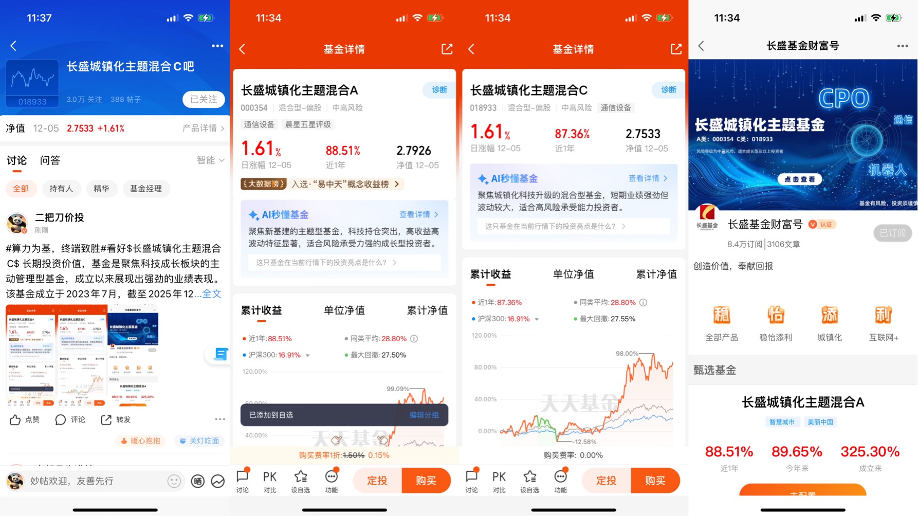 长盛城镇化是一只主动管理型基金,基金成立以来长期业绩表现亮眼,产品投向CPO、人工智能等新科技领域。$长盛城镇化主题混合A(OTCFUND|000354)$$长盛城镇化主题混合C(OTCFUND|018933)$