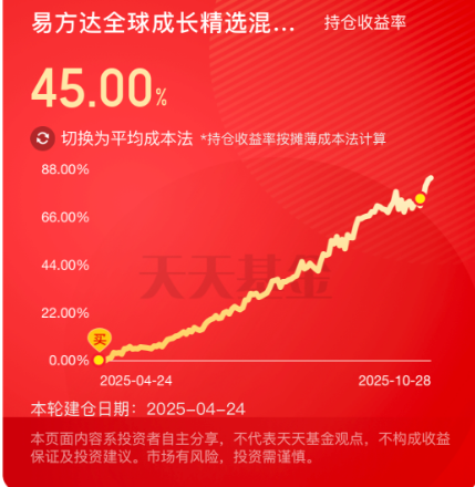 说到这里,就不得不说他的另外一份得意产品,也是全球硬科技方向的$易方达全球成长精选混合(QDII)人民币C(OTCFUND|012922)$,看看我的2次抄底,目前持仓收益率45%,恭喜当时一起和我上车并持有到现在的兄弟。