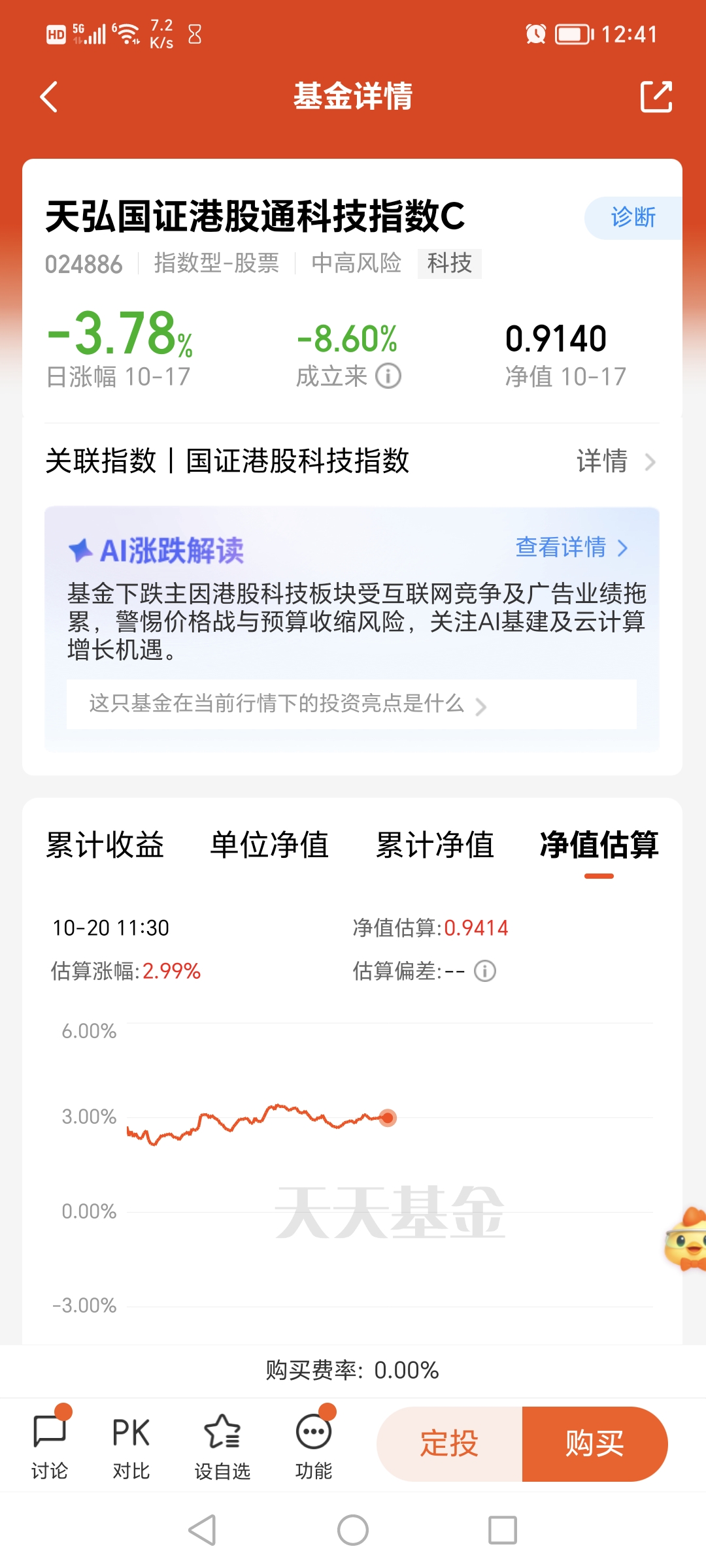 $天弘国证港股通科技指数C(OTCFUND|024886)$今天加仓1000元。