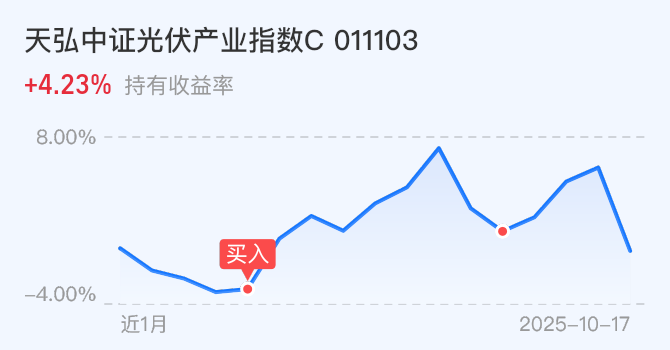 $天弘中证光伏产业指数C(OTCFUND|011103)$今天不动。