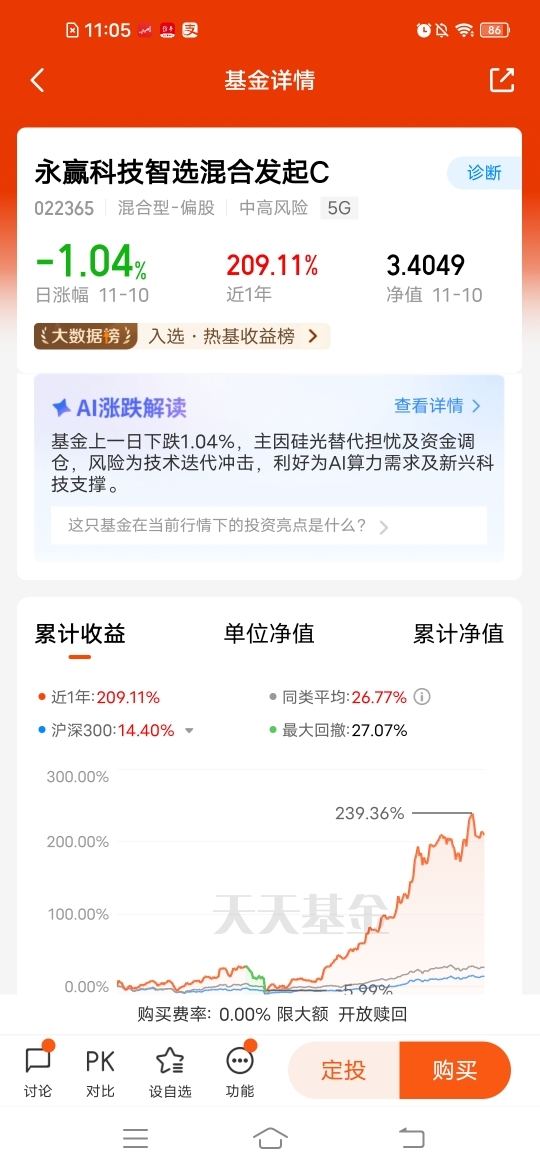 $永赢科技智选混合发起C$ CPO概念,趁着调整后布局更有动力,超高弹性,近一个月涨幅4.92%,近三个月涨幅58.66%,近六个月涨幅183.79%,近一年涨幅209.11%,有点东西,紧扣科技产业升级的核心逻辑,既关注企业的长期技术,在追求高弹性的同时,基金通过严格的风险控制,将最大回撤控制到最低,展现出“攻守兼备”的特质。#工信部:深入实施“机器人+”应用行动#