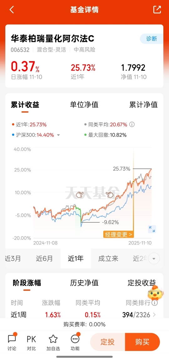 最近市场的节奏真的太快了,11月宏观没什么明确信号,科技股涨势放缓,题材股你方唱罢我登场,但普通投资者根本跟不上。不过细心观察就会发现,小微盘股在这种行情里反而涨得很稳,胜率特别高,而量化基金就是小微盘的“收割机”。量化投资靠的是模型和算法,不会被情绪左右,能快速处理大量数据,及时抓住小微盘的投资机会。华泰柏瑞作为量化领域的佼佼者,近三个月收益比同类微盘策略基金都高,而且回撤控制得更好,不会让你体验大起大落。现在主动量化基金整体表现优异,年度收益亮眼,趁行情好,入手华泰柏瑞准没错。