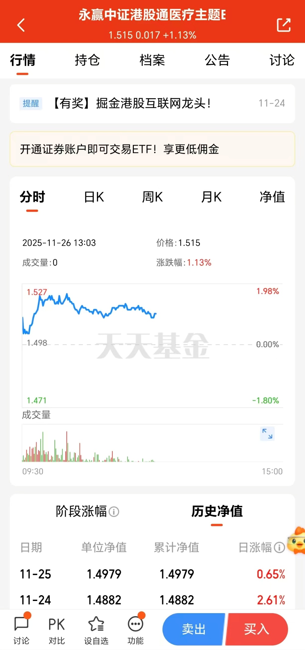 CXO行业海外需求持续复苏,永赢中证港股通医疗主题ETF及$永赢中证港股通医疗主题ETF发起联接C$(A:024860;C:024861)作为全市场首支重点关注CXO赛道的ETF,其CXO含量全市场最高,流动性出色,近期走入高速上涨区间,今日高开高走,当下强势上涨超1%,实现3连涨,投资价值凸显。