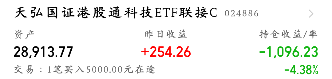 加仓买进5000的 $天弘国证港股通科技ETF联接C(OTCFUND|024886)$