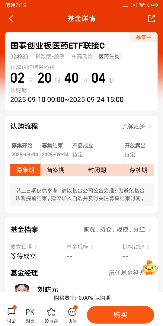 在当前医药板块历经调整,估值处于近十年来底部区域的时候,左侧布局把握医药板块的投资机遇,值得选择$国泰创业板医药ETF联接C$ 这样一支布局医药板块的优质基金进行投资并长期持有,在医药板块收获超额投资回报。