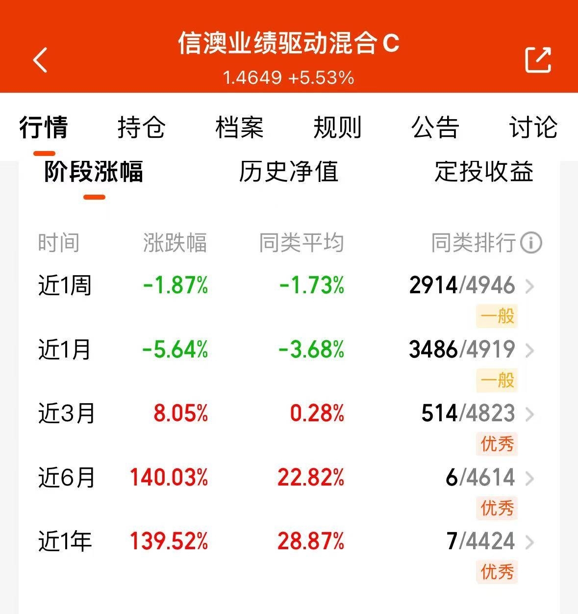信澳业绩驱动混合C近一年达到139.52%,全部排名都是同类优秀,可以说是很抗打了。今天加点,刚好抄底进场 $信澳业绩驱动混合C$