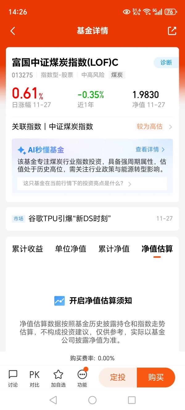 手里有招商煤炭A,也配了点富国中证煤炭C,它跟踪误差仅0.44%,近3个月涨5%