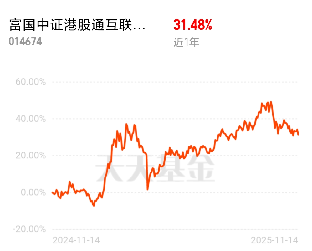 最近调仓时配了些富国中证港股通互联网ETF联接C,专注港股互联网龙头,估值处在近