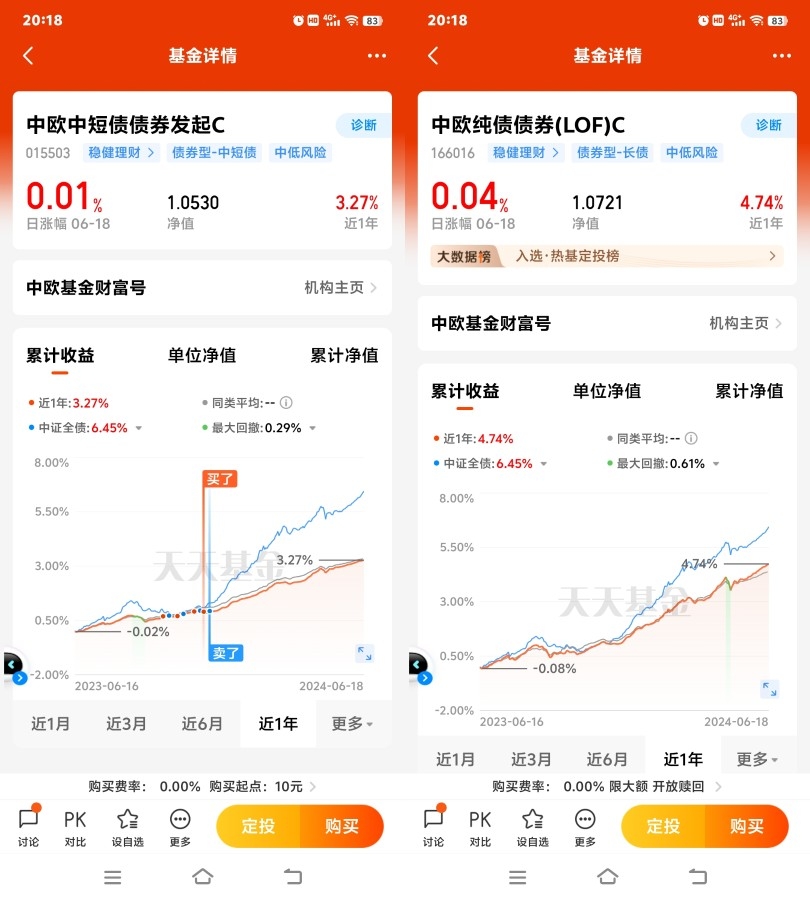 #中欧报蛋大赢家# 报蛋第19天,$中欧纯债债券(LOF)C$ 今天收2个蛋,我选择持有债券基金攒钱,除了有稳定的利息,还有资本利得。债基久期短风险低,买入零费用,持有满7天赎回零费用低廉。闲钱理财就是震荡市场之下获得相对稳健的投资体验,所以当前比较适合我们的,那就是先从中低风险类型的基金产品开始,纯债债券基金就是其中一种。 这几年权益市场持续震荡,债券基金产品一下子就被很多投资者接受,纯债基金产品收益率不算高,但是纯债基金产品只要有闲钱就可以投资10块钱就可以买,对于我们的闲钱的资金流动性是很大的帮助。在低利率时代,债券基金的年化利率大概在3%-4%之间,我想大部分人会选择投资债券基金,当然也不排除存款债基都会配置,不过金年我依然选择配置债券基金,就当存款攒钱慢慢变富!@中欧基金