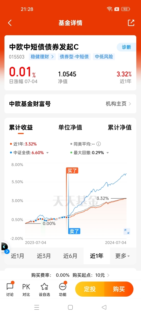 打卡第19天,$中欧纯债债券(LOF)C$ 今天收2个蛋,今年我的闲钱投资纯债基金产品,作为我的闲钱理财好帮手,债券基金不投资权益市场,稳健踏实。权益市场起起伏伏让人捉摸不透,债券基金不投资股票市场一定程度上可以分散风险,而且是资产组合中的压舱石,闲钱理财还是要选它比较安心。