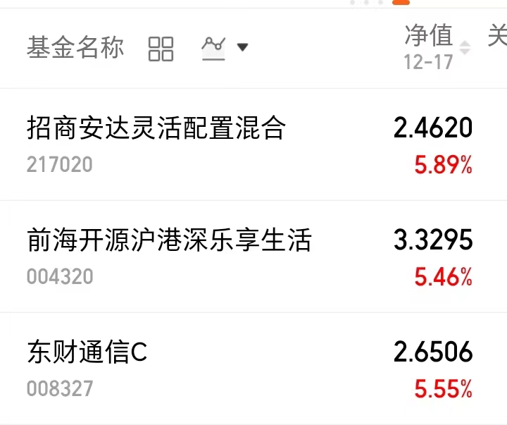 昨天股市行情反弹了,又见普涨行情,估值修复了不少呢。$招商安达灵活配置混合(OTCFUND|217020)$聚焦电子通讯行业,昨天大涨5.89%,