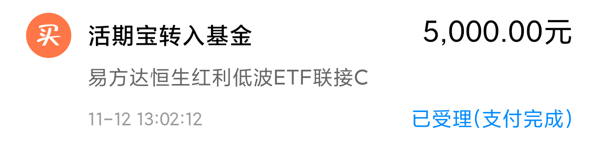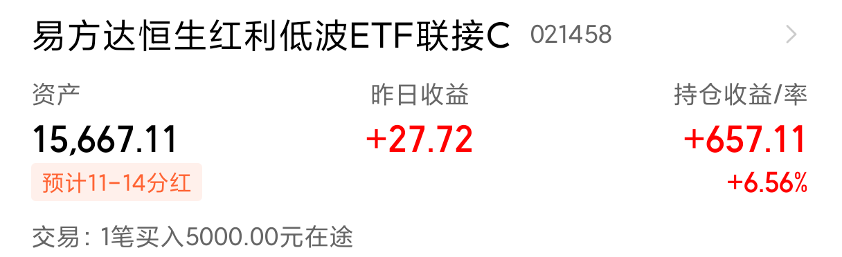 继续加仓,买进5000的 $易方达恒生红利低波ETF联接C(OTCFUND|021458)$