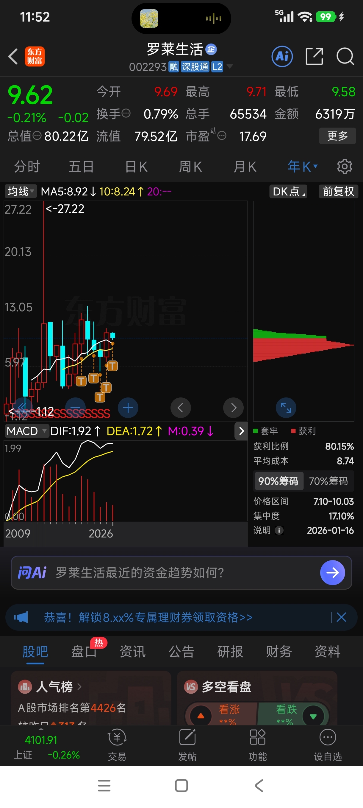 $罗莱生活(SZ002293)$ 过13,一马平川。