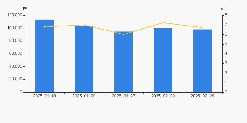 2025年1月10日至今,公司股东户数显著下降,区间跌幅为13.42%。2025年1月10日至2025年2月28日区间股价下降1.03%。
