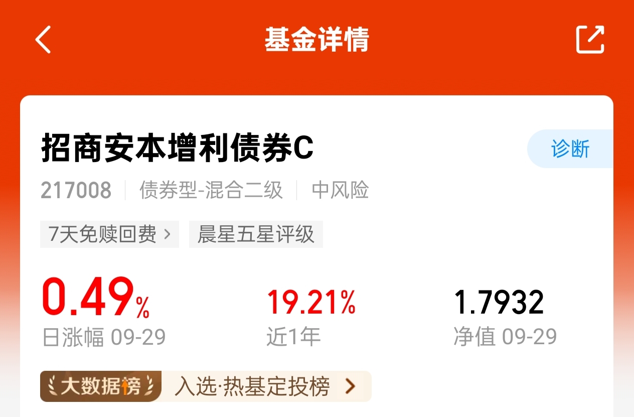 $招商安本增利债券C(OTCFUND|217008)$昨天净值上涨了49个蛋,最近一周累计涨了55个蛋,这个表现比同类产品要好不少。我注意到这只基金近期走势比较稳健,在震荡行情中保持了不错的收益能力。